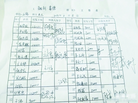 網(wǎng)友撿到的民工工資單 網(wǎng)友圖