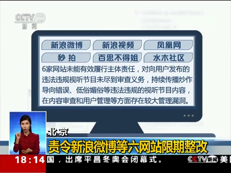 責令新浪微博等六網站限期整改