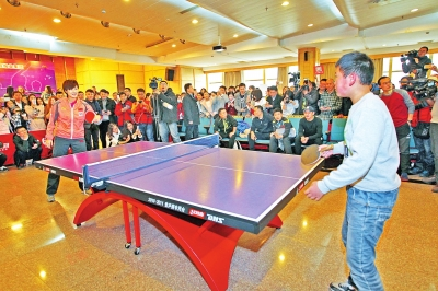 面對冠軍,來自偏僻山村的孩子卻絲毫不露怯,打起球來有模有樣,你來我往多個回合,甚至還中途由橫拍換成直拍。連現(xiàn)場當起裁判和解說的國乒隊領(lǐng)隊黃飆都不禁感嘆:“按這樣的打法,要打到明天早上了!”惹得觀眾席陣陣笑聲。