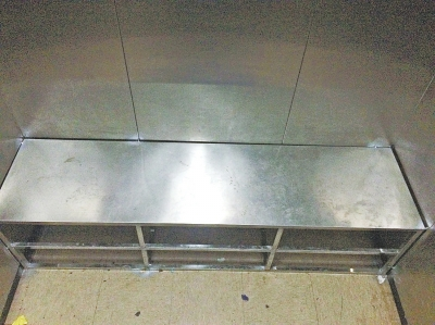 昨天,記者來到李先生所在小區(qū)52號樓,該樓一共3部電梯,其中一部顯示正在維修,而另一部電梯內(nèi),緊挨梯廂里側(cè),焊接了一個寬約30厘米的座椅。第三部內(nèi)尚未安裝座椅。