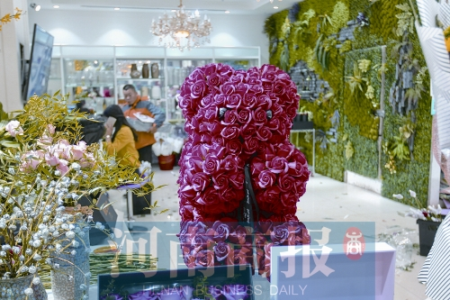 河南商報記者在陳砦花卉大學路店走訪時,發(fā)現(xiàn)三樓的鮮切花區(qū)一片忙碌景象,每家花店或門口都擺滿了打理好的花束和禮盒。