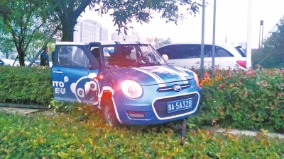 沖進(jìn)綠化帶的共享汽車